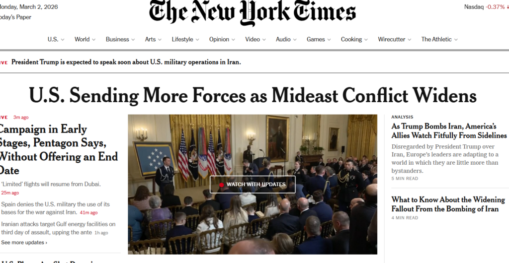 As I wrote yesterday, he’s given several estimates of how long the Iran project will take. The earliest estimate I saw was that he expected to conclude the project this week sometime. But now it’s four weeks. And the conflict appears to be spreading. Overnight Israel attacked Hezbollah-controlled areas in Lebanon. And Iran launched a drone strike against a Saudi oil refinery. Kuwait “mistakenly” shot down three U.S. F-15 fighter jets on Sunday; the crews all ejected safely.