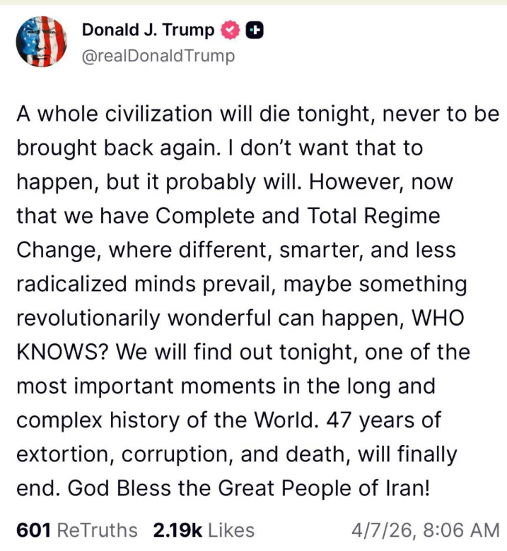 Donald Trump yesterday showed how few cards the USA had to play in his war of choice, when he went from threatening to destroy Iranian people, culture and history, to agreeing to a two-week ceasefire and talks based on an Iranian ten point plan. The details of this plan (see below) amount to a comprehensive US defeat. If this indeed is the end of the war and that Iranian plan is the basis of a deal, it makes this if not the longest war in US history, the most pointless and a complete waste. Iran looks on the verge of emerging stronger, with the ability to generate massive new income, while the US looks, in a word, a busted flush.